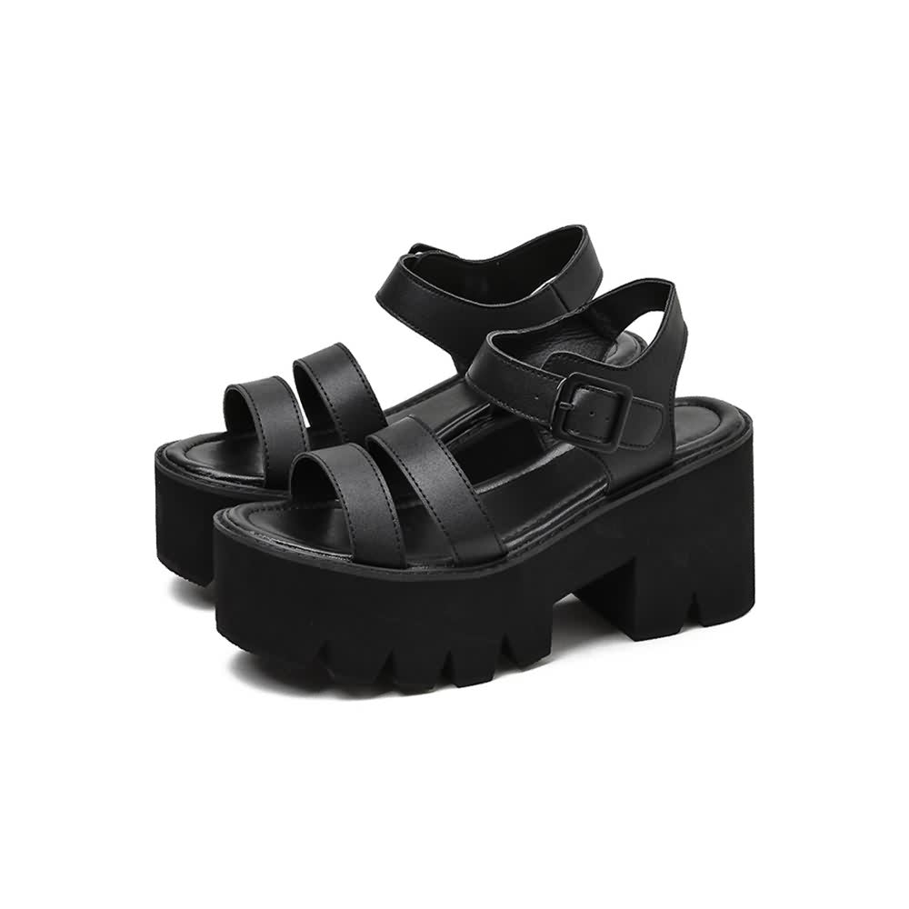 Mit unseren schwarzen Gothic-Punk-Plateau-Sandalen aus Leder bist du immer stilvoll unterwegs. Die Plateausohle sorgt für mehr Höhe und der verstellbare Knöchelverschluss sorgt für sicheren Halt. Diese Sandalen vereinen Funktionalität mit Stil. Hergestellt aus schwarzem veganem Leder mit Riemchenoberteil. Perfekt, um deinen Gothic-, Punk-, Rock- oder Alternativ-Stil zu präsentieren. Werten Sie Ihre Garderobe mit diesen exklusiven und trendigen Sandalen auf.