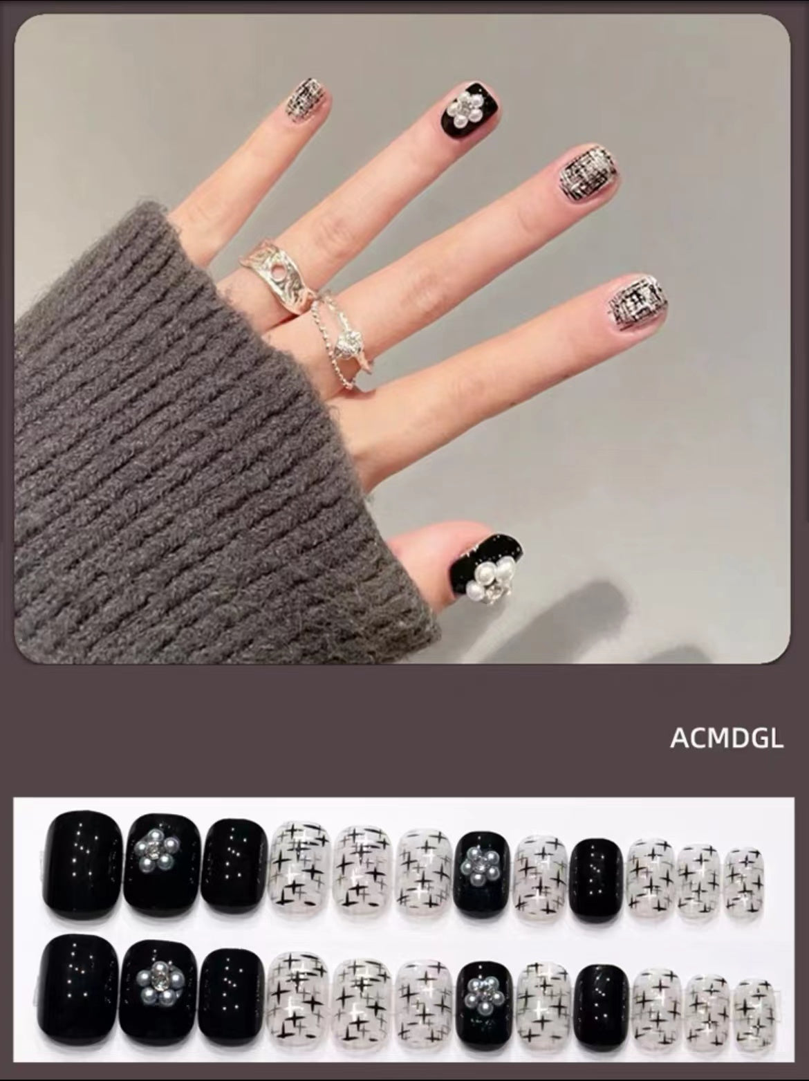 • Die Verpackung enthält eine Schachtel mit 24 Nagelstücken und einen Kleber.