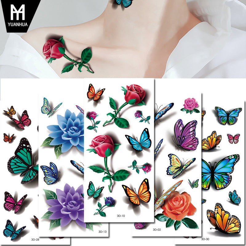 3D Schmetterling Blume wasserdichte Tattoo-Aufkleber