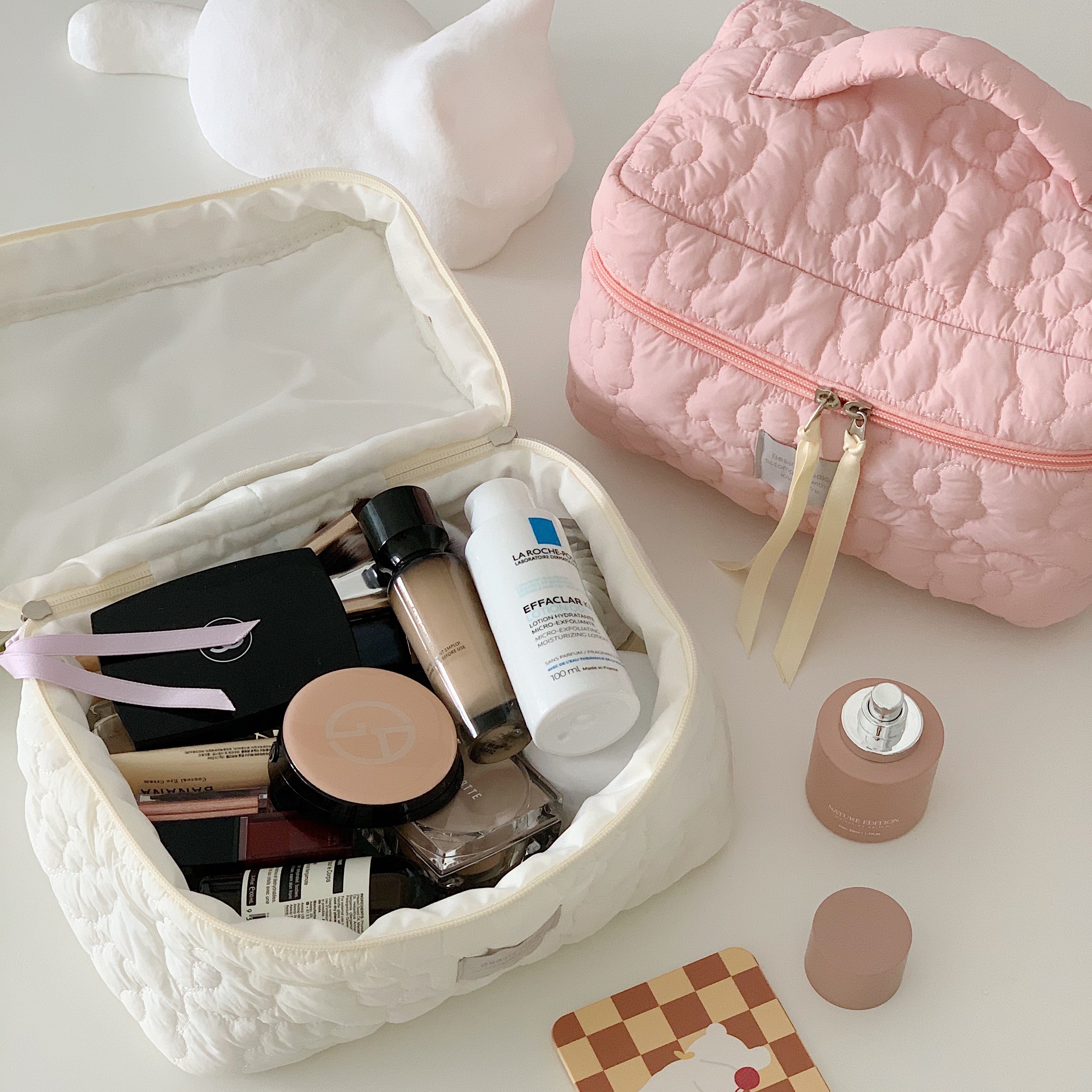 Weiche Kosmetiktasche mit Blumenmuster in Bonbonfarbe