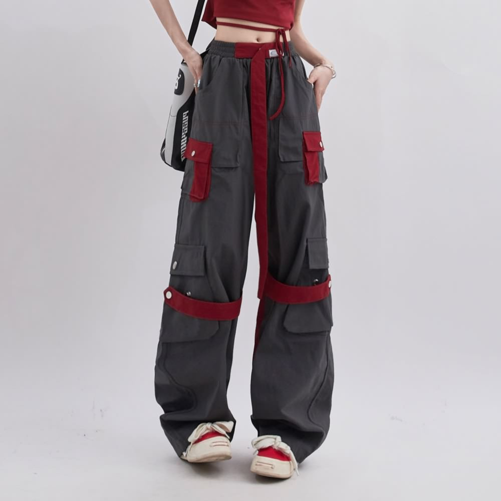 Wir präsentieren die Crimson Wide Leg Gothic Cargohose – das ultimative Statement-Piece für Modebegeisterte. Mit ihrem auffälligen Grau und den fesselnden roten Akzenten versprüht diese trendige Hose einen Gothic-Look. Sie bietet Komfort und Stil mit hoher Taille, elastischem Bund und mehreren geräumigen Cargotaschen. Hergestellt aus strapazierfähigem und atmungsaktivem Wollstoff, ist sie für jeden Anlass geeignet.