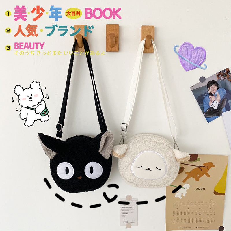 Süße Umhängetasche aus Plüsch mit Katzenmotiv