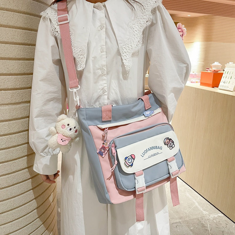● Diese modische Kawaii-Schultertasche ist aus Nylon gefertigt und verfügt über einen großen Innenraum mit vielen Fächern. Sie bietet Platz für A4-Bücher, ein iPad, einen Taschenschirm, Kopfhörer, Taschentücher, Schreibwaren usw.