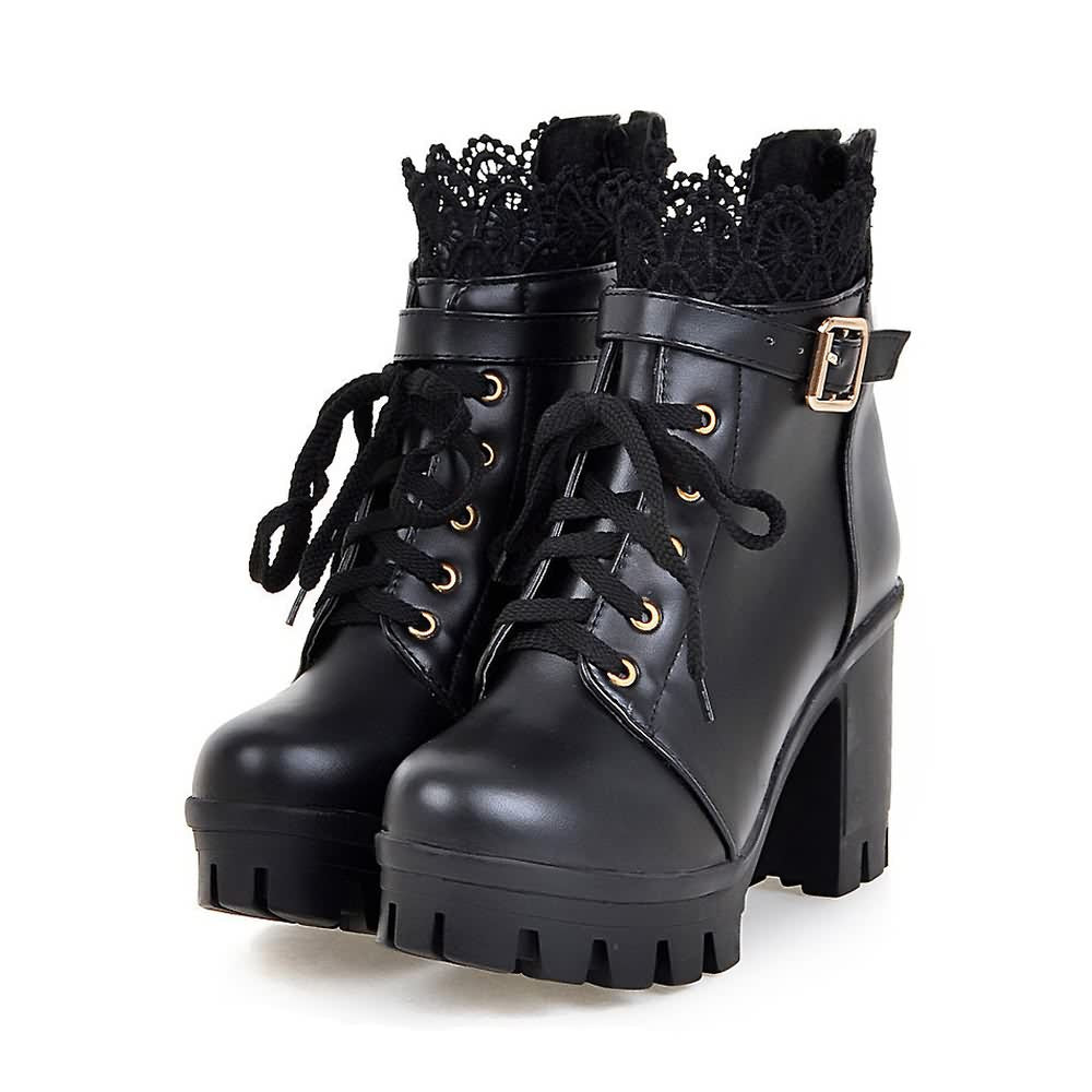 Veredeln Sie Ihren Stil mit unseren Gothic-Plateaustiefeln mit Schnallenriemen und Schnürung. Die florale Spitzenstickerei verleiht Ihrem Look einen femininen Touch. Diese Stiefel bieten dank Schnallenriemen und Reißverschluss hinten sicheren Halt. Hergestellt aus strapazierfähigem PU-Leder mit einer Gummisohle für mehr Komfort. Holen Sie sich Ihre Stiefel in klassischem Schwarz oder Weiß für einen zeitlosen Look. Perfekt, um Ihrem Outfit ein markantes Statement zu verleihen.