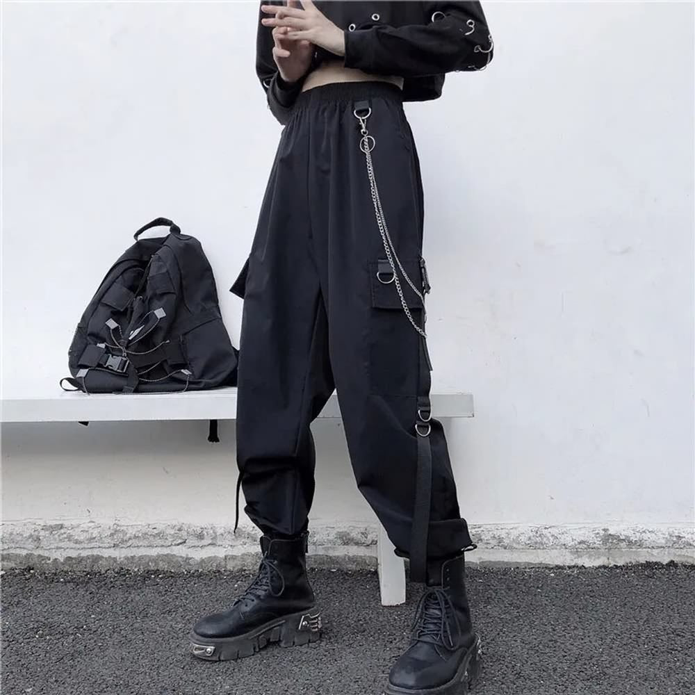 Wir präsentieren die Gothic Chain Cargo Pants – die ultimative Wahl, um Ihren einzigartigen Stil zu präsentieren. Hergestellt aus einem Baumwoll-Polyester-Mix bietet diese Hose Komfort und Strapazierfähigkeit. Die Samtinnenseite sorgt für ein angenehmes Tragegefühl. Mit Front- und Oberschenkeltaschen mit Schnallenriemen bietet sie Platz für alles Wichtige. Der hohe Bund und die gerippten Bündchen sorgen für eine bequeme Passform. Komplett mit einer stylischen Kette versprüht diese Hose Flair. Passend für jeden Anlass – Clubnacht, Konzert oder Freizeitausflug. Entdecken Sie jetzt unsere Kollektion!