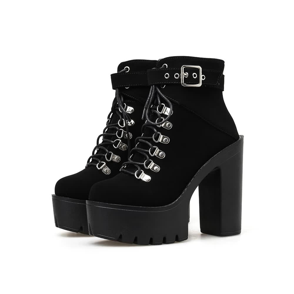 Veredeln Sie Ihren Stil und Komfort mit unseren Gothic Wildleder-Plateaustiefeln mit Schnallenriemen und Schnürung. Diese trendigen Stiefel mit D-Ring-Schnürung, Schnallenriemen und seitlichem Reißverschluss passen zu jedem Look. Hergestellt aus hochwertigem Wildleder mit robuster Gummisohle, bieten diese Stiefel sowohl Mode als auch Funktionalität. Holen Sie sich noch heute Ihren in Schwarz!