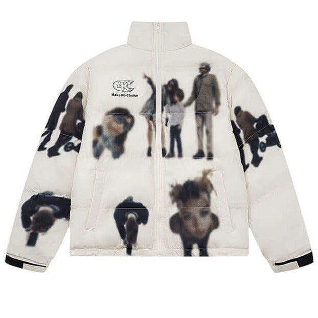 Setzen Sie diesen Winter ein modisches Statement mit der warmen weißen Pufferjacke mit Grunge-Ästhetik-Print. Genießen Sie den trendigen Look und bleiben Sie stilvoll warm. Bestellen Sie jetzt und definieren Sie Ihre Wintergarderobe neu! Kostenloser Versand in den USA und weltweit.