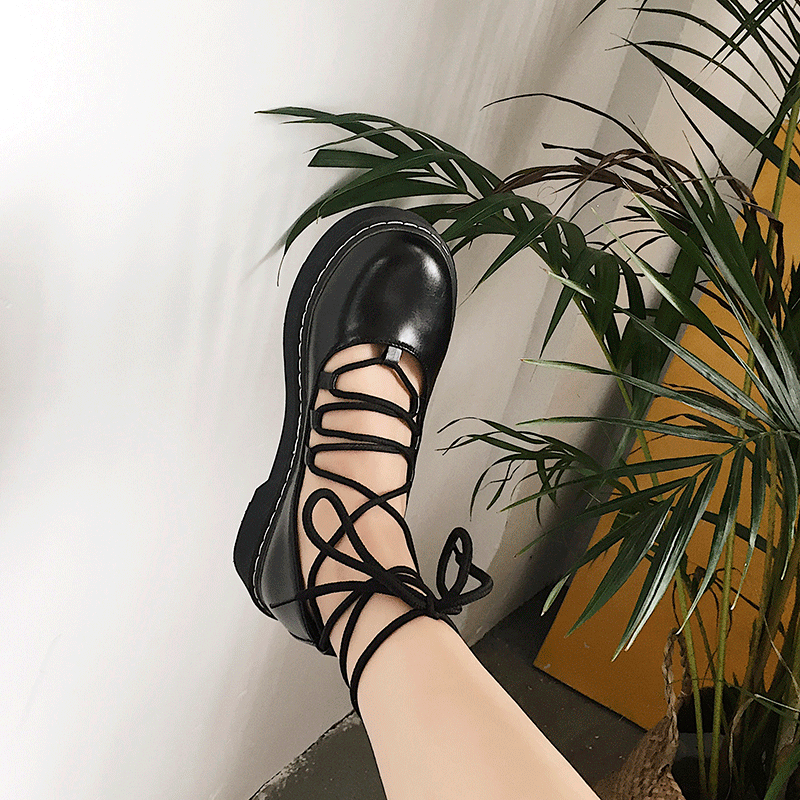 Flache Sandalen aus schwarzem Leder mit geschlossener Spitze und Schnürung