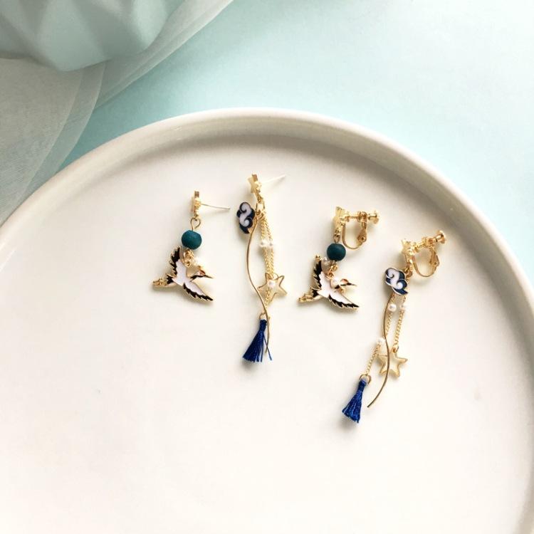 Der Metallhintergrund hat die Form von Sternen und Kranichen . Und die asymmetrischen Ohrringe lassen die Menschen strahlen und ein einzigartiges Temperament ausstrahlen.
