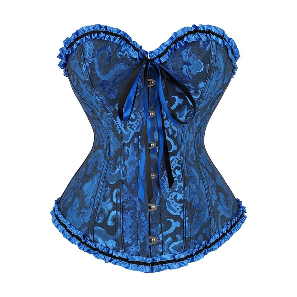 Veredeln Sie Ihren Stil mit unserem dunkelblauen Gothic-Sanduhr-Überbrustkorsett mit Rüschenbesatz. Mit Ösenschnürverschluss und stützenden Kunststoffstäbchen für eine atemberaubende Sanduhrfigur. Der elegante Rüschenbesatz verleiht diesem dunkelblauen Korsett aus hochwertigem Polyester und Elasthan Raffinesse. Betonen Sie Ihre Figur mit unserem hochwertigen Überbrustkorsett.