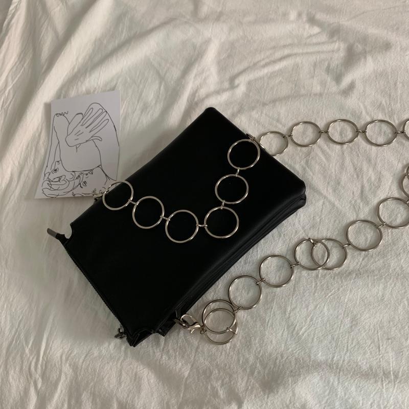 Silberne Metallringe Kette Schwarze Pu-Ledertasche