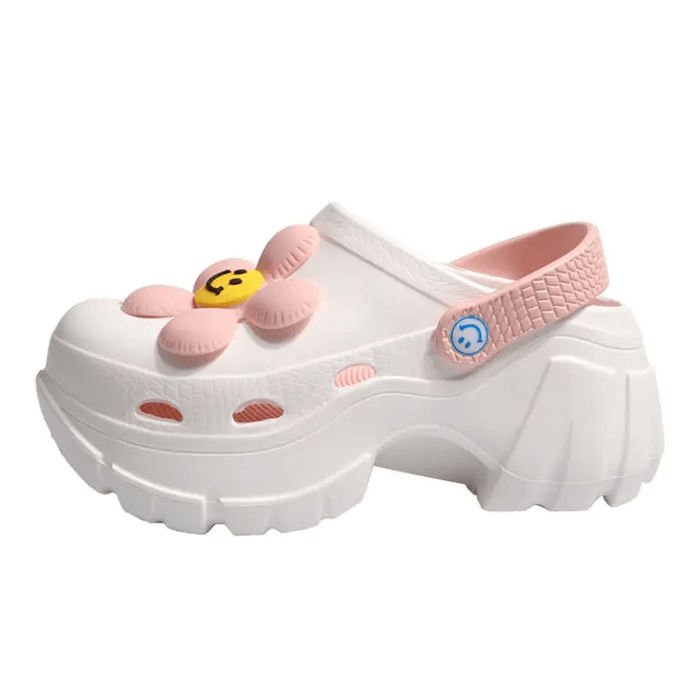 Verpassen Sie nicht die Chance, Ihren Sommer mit unseren weißen, klobigen Plateau-Sandalen mit Smiley-Blumenmotiv zu verschönern. Veredeln Sie Ihren Stil, genießen Sie unvergleichlichen Komfort und setzen Sie ein verspieltes Statement. Bestellen Sie jetzt und starten Sie mit einem Lächeln in die sonnige Jahreszeit!