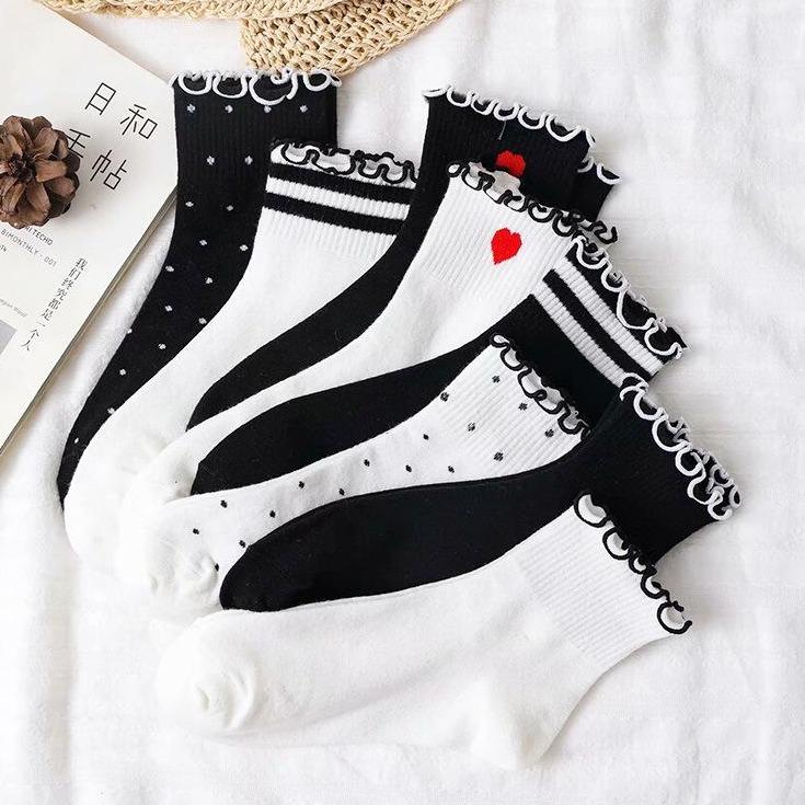 Diese süßen Baumwollsocken mit Spitze sind aus bequemer und atmungsaktiver Baumwolle gefertigt. Passen gut zu Turnschuhen, Röcken, Jeans usw.