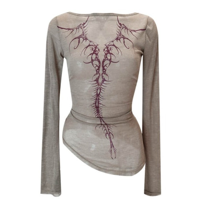 Veredeln Sie Ihr Streetwear-Outfit mit unserem dünnen, beigen Langarm-Indie-Top „Tattoo Tail“. Dieses unverwechselbare Top in trendigem Beige ist nicht nur Kleidung, sondern Ausdruck Ihrer Persönlichkeit. Hergestellt aus hochwertiger Baumwolle, verbindet es Komfort und Indie-Mode. Kostenloser Versand in den USA und weltweit.