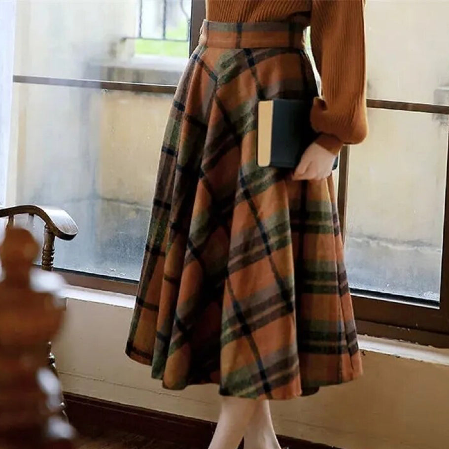 Dieser karierte Vintage-Academia-Rock aus Wolle von ZzKit ist perfekt für Momente, die Eleganz und Raffinesse erfordern. Hergestellt aus hochwertiger Wolle mit weichem, glattem Futter. Mit seiner A-Linien-Silhouette und seinem schicken Karomuster in Herbsttönen ist dieser Rock ein zeitloses Kleidungsstück, das Sie jahrelang begleiten wird.