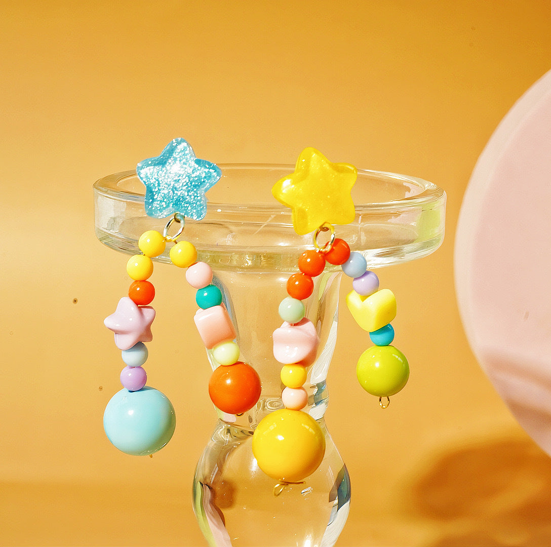Pendientes asimétricos de estrellas con cuentas de colores