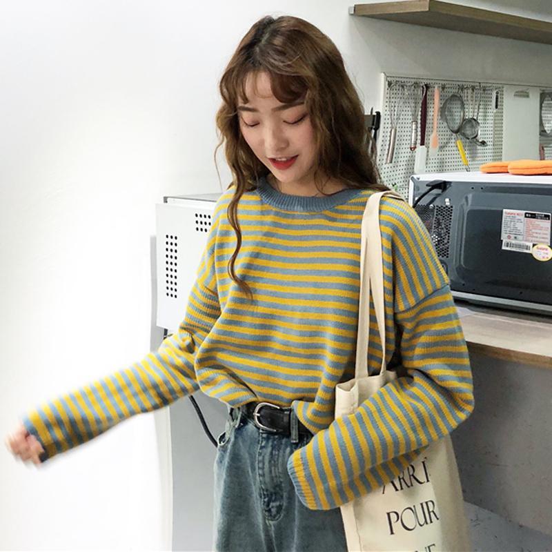 Suéter cálido de punto con rayas amarillas y azules estilo abeja