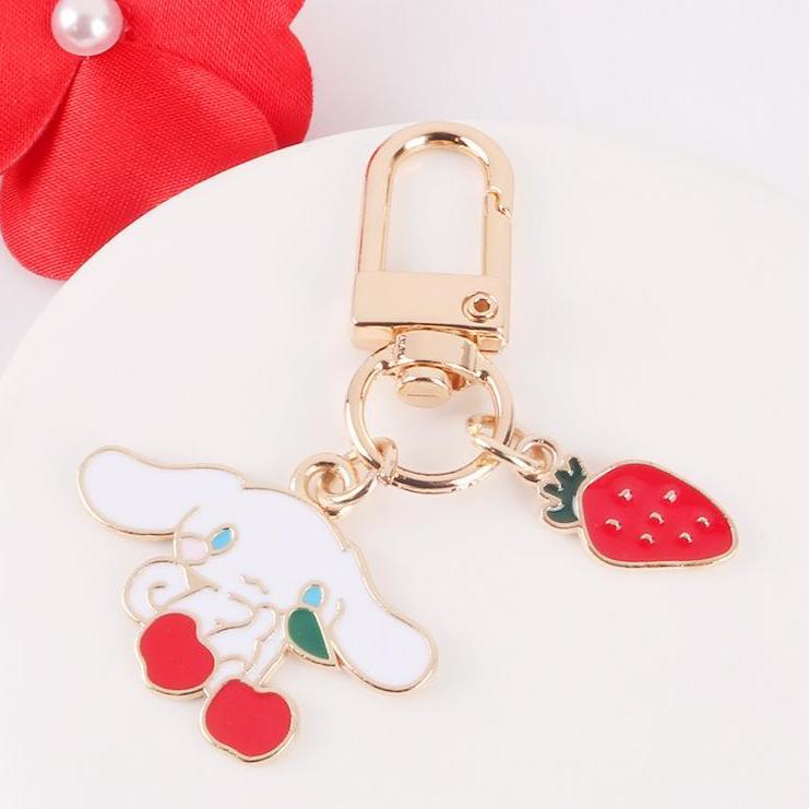 • Este llavero kawaii de conejo de orejas grandes ama las fresas. El diseño es lindo e infantil y la expresión es vívida.