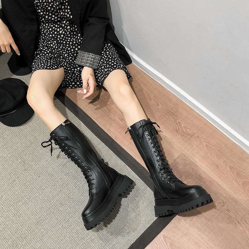 Botas altas de combate con plataforma gruesa y estética grunge negra