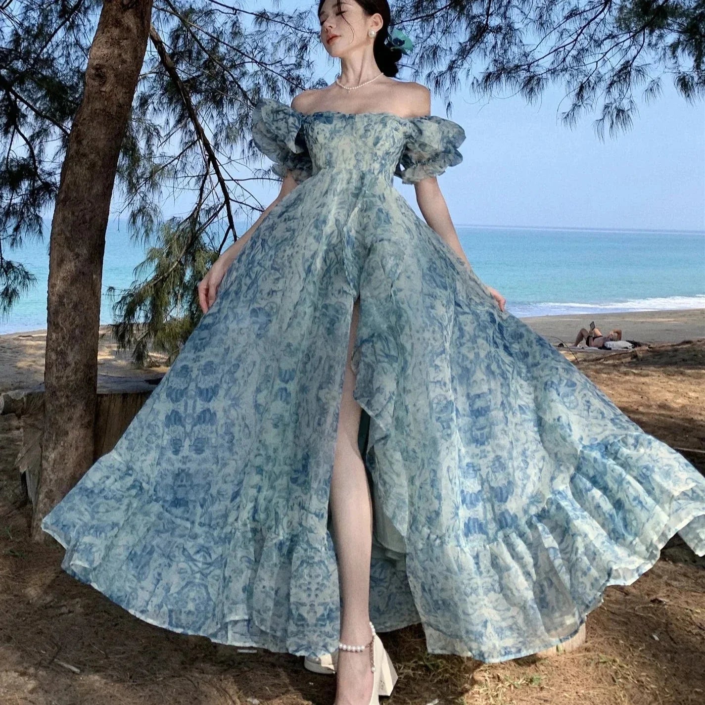 Este etéreo vestido Fairycore está listo para cualquier aventura este verano. Con su tono azul marino y su caprichoso diseño de Fairycore, este vestido sin duda inspirará una sensación de asombro y emoción. Con hombros al descubierto, cintura imperio, mangas abullonadas, abertura lateral y bajo con volantes. ¡No pierdas la oportunidad de lucir este atrevido vestido en tu próximo evento al aire libre este verano!