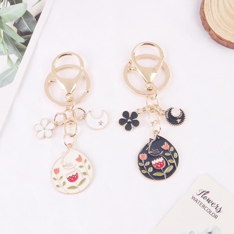¡El llavero de flor de luna y gato kawaii tiene un estilo de diseño lindo!