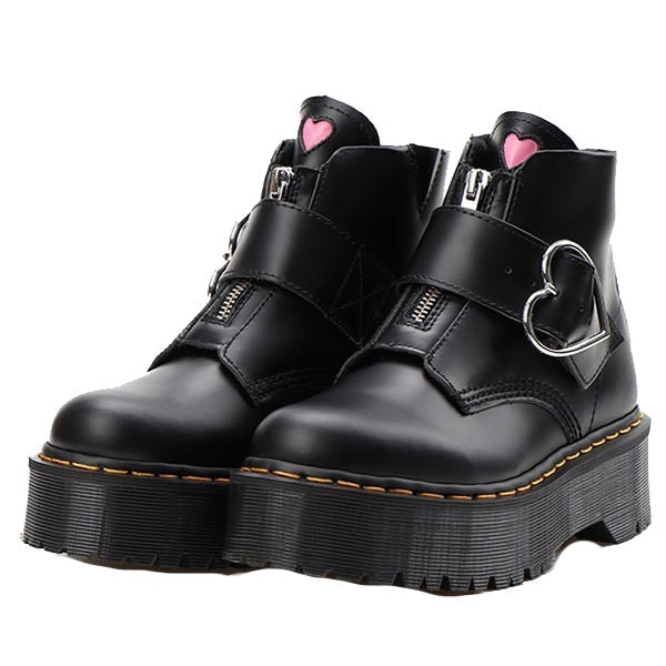 Botas de suela gruesa con hebilla de corazón de metal y diseño clásico