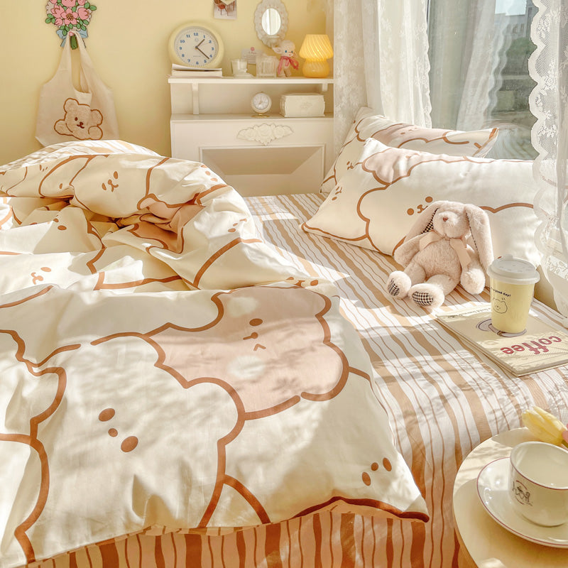 Juego de cama de oso color crema