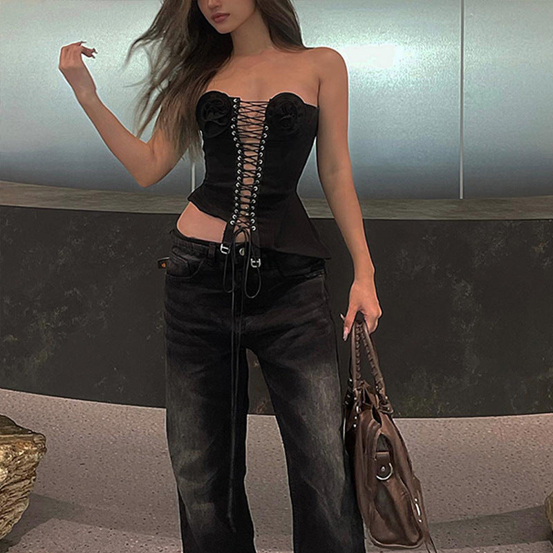 • Features: Strapless, sleeveless, slim fit, 3D flower decoration, cute and elegant; Crisscross lace front design, not only can adjust the comfort as needed, but also perfectly highlight your charming body curves, enhancing charm and confidence.