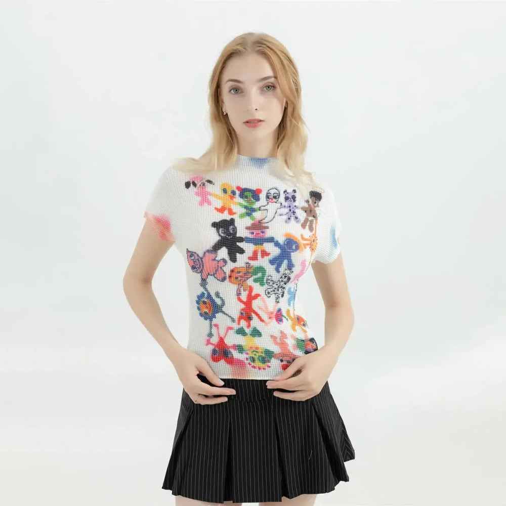 ¡Vive la moda y la comodidad con nuestra linda camiseta Harajuku Kawaii de dibujos animados! Esta camiseta de manga corta, confeccionada en una acogedora mezcla de poliéster y elastano, luce divertidos estampados kawaii en la parte delantera y trasera. Ideal para darle un toque de personalidad a tu conjunto.