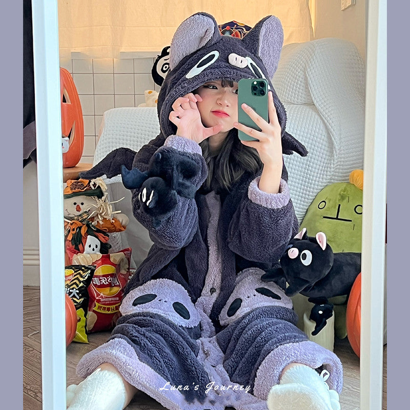 • Camisón bonito de otoño e invierno. Tejido muy suave. Bonita ropa de estar por casa. Pequeño estampado de murciélago. Muy caricaturesco.