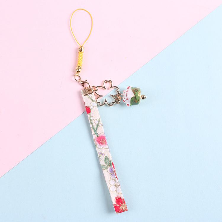 Llavero estilo japonés kawaii para niñas. ¡El gato y las flores significan rico y afortunado!