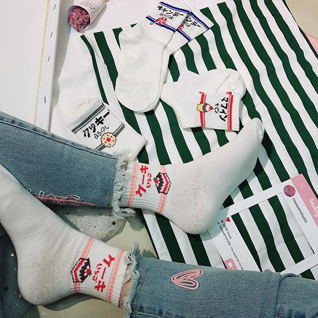 Calcetines con bordado de dibujos animados y estampado de letras japonesas
