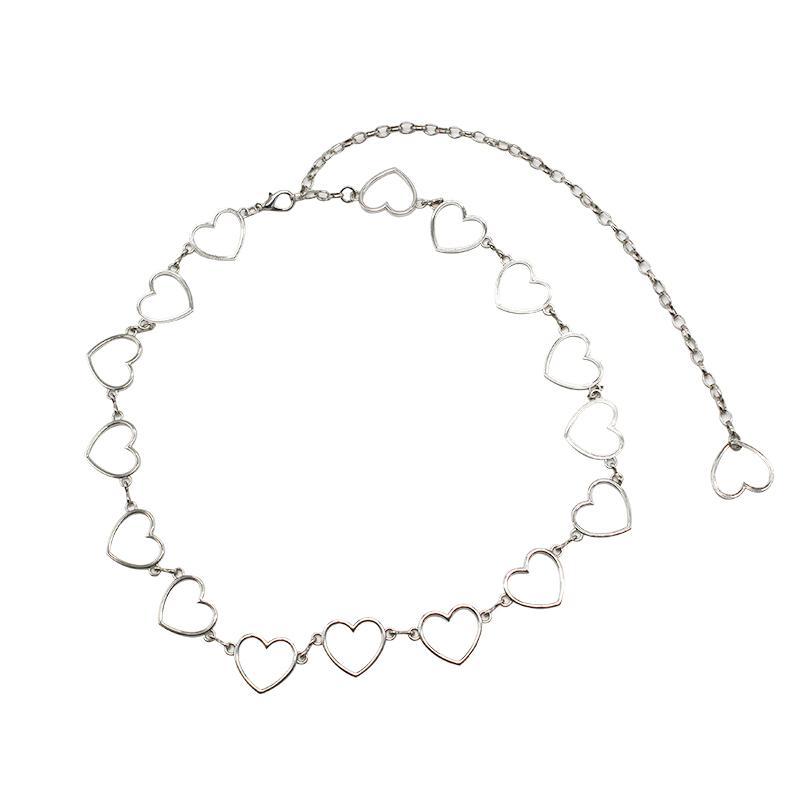 Cinturón con cadenas estéticas Tumblr de corazones metálicos