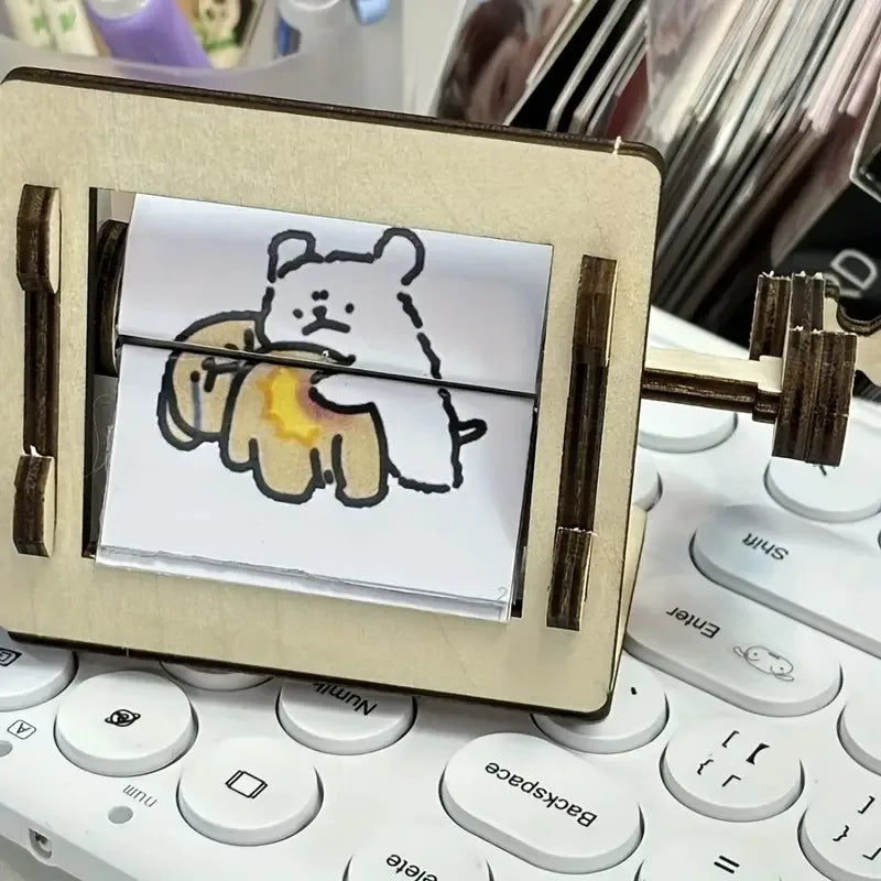 1x DIY Wooden Hand-Cranked Animation Machine Desktop Decor Kit