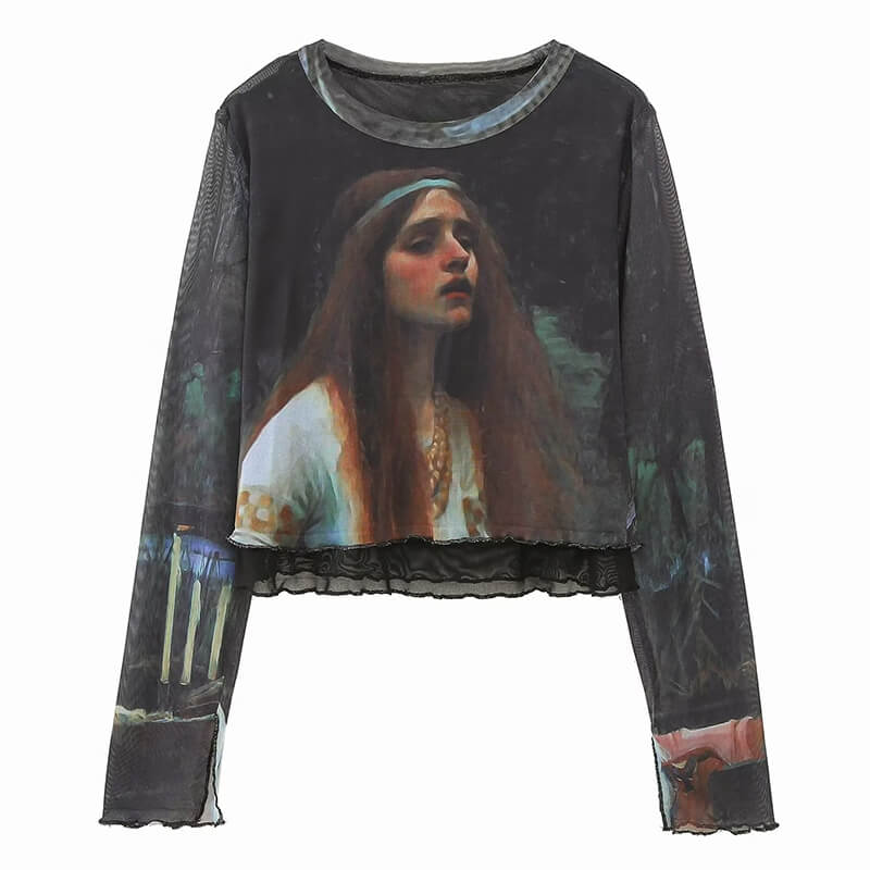 Sumérgete en la mística de la estética oscura y los cuentos populares con este versátil top de malla. Su intrincado diseño te permite expresar tu individualidad en el mundo del estilo cottagecore y la moda artística. Su tejido de poliéster, ligero y transpirable, garantiza un ajuste cómodo y un toque atrevido. Este top no es solo una adición a tu armario; es una prenda que narra historias y da vida a tu narrativa de moda.