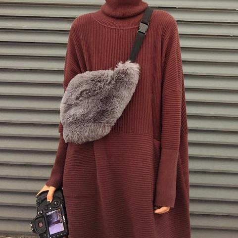 Bolso de hombro estilo cinturón de piel esponjosa de color gris
