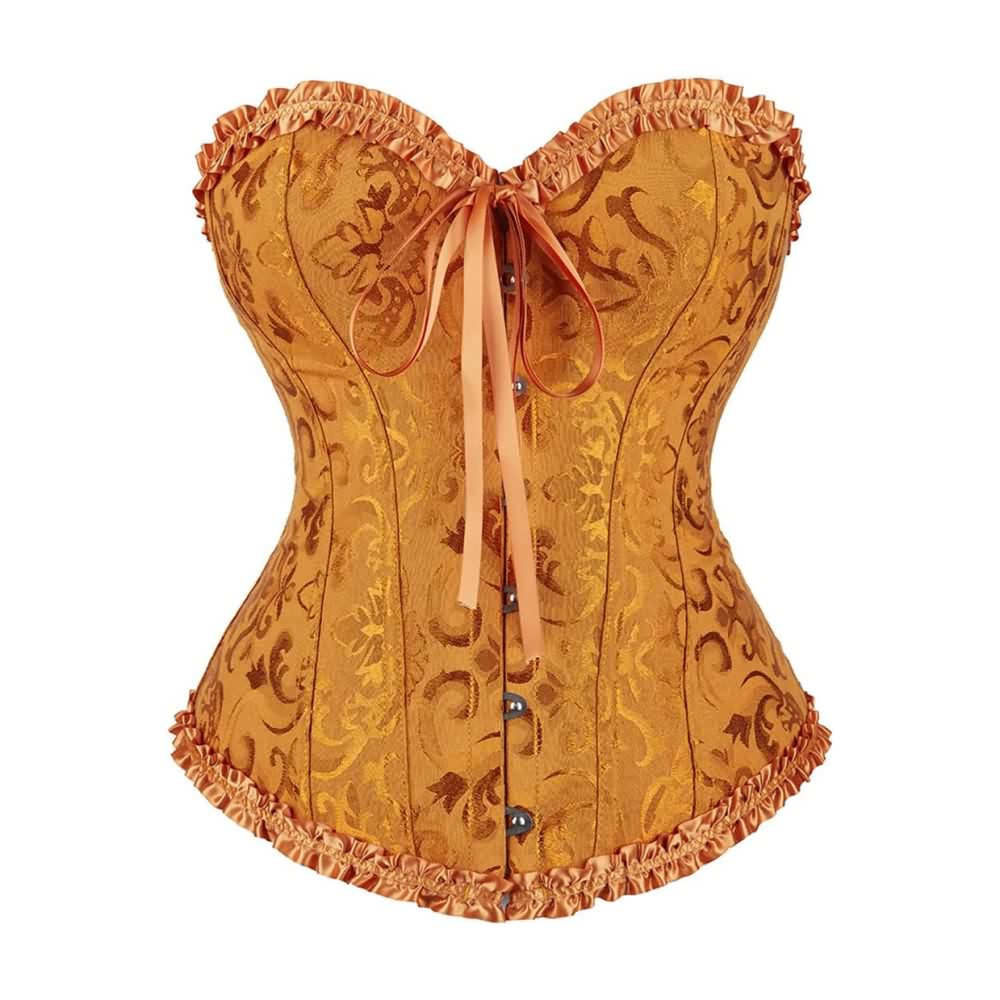 Realza tu estilo con nuestro lujoso corsé gótico dorado con volantes y diseño de reloj de arena. Resalta tus curvas con su diseño de reloj de arena, reforzado por varillas de plástico resistentes. La espalda con cordones añade elegancia, mientras que el detalle del volante irradia sofisticación. Confeccionado en una mezcla de poliéster y elastano, este corsé te garantiza una sensación majestuosa. ¡Vive el lujo como nunca antes!