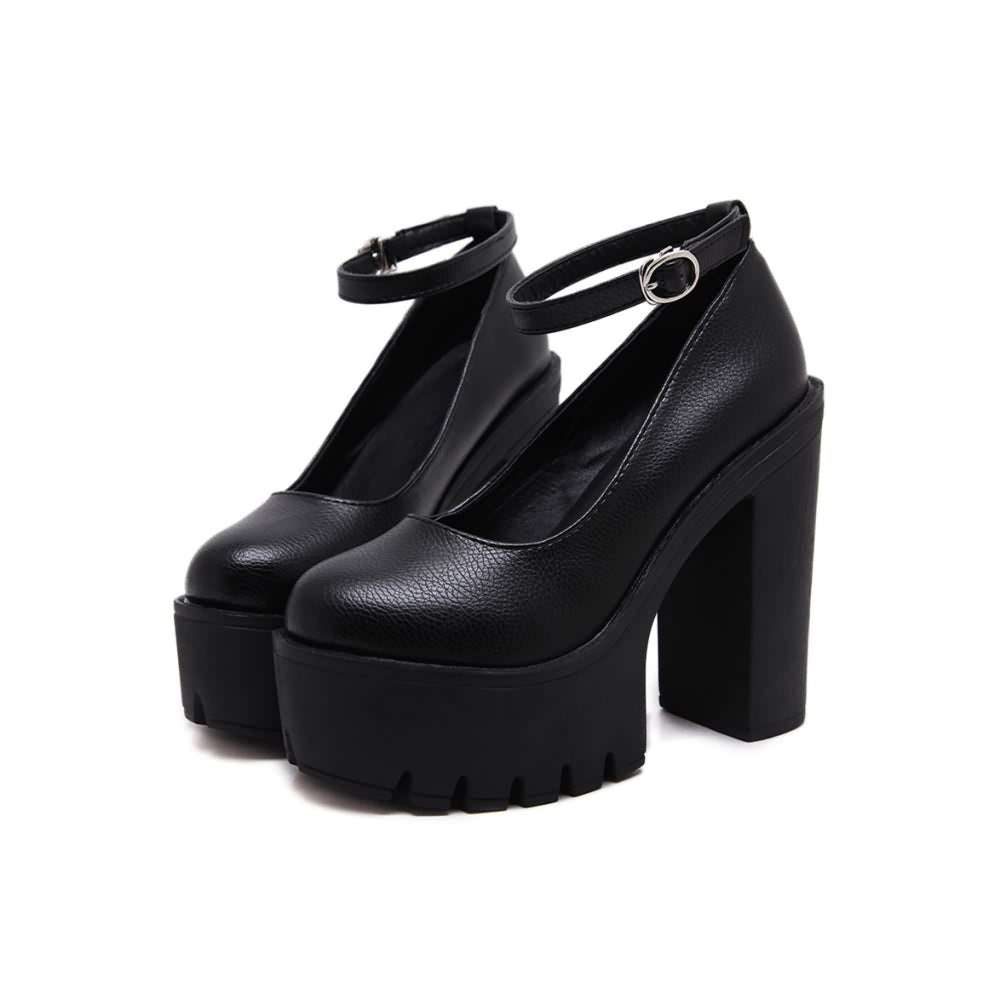 Realza tu look con nuestros zapatos de plataforma góticos con tira al tobillo. Estos elegantes zapatos cuentan con plataformas gruesas y tacones trapezoidales que te brindan comodidad y elegancia. Elaborados en piel sintética negra con una tira al tobillo para mayor sofisticación, son imprescindibles para cualquier conjunto elegante.