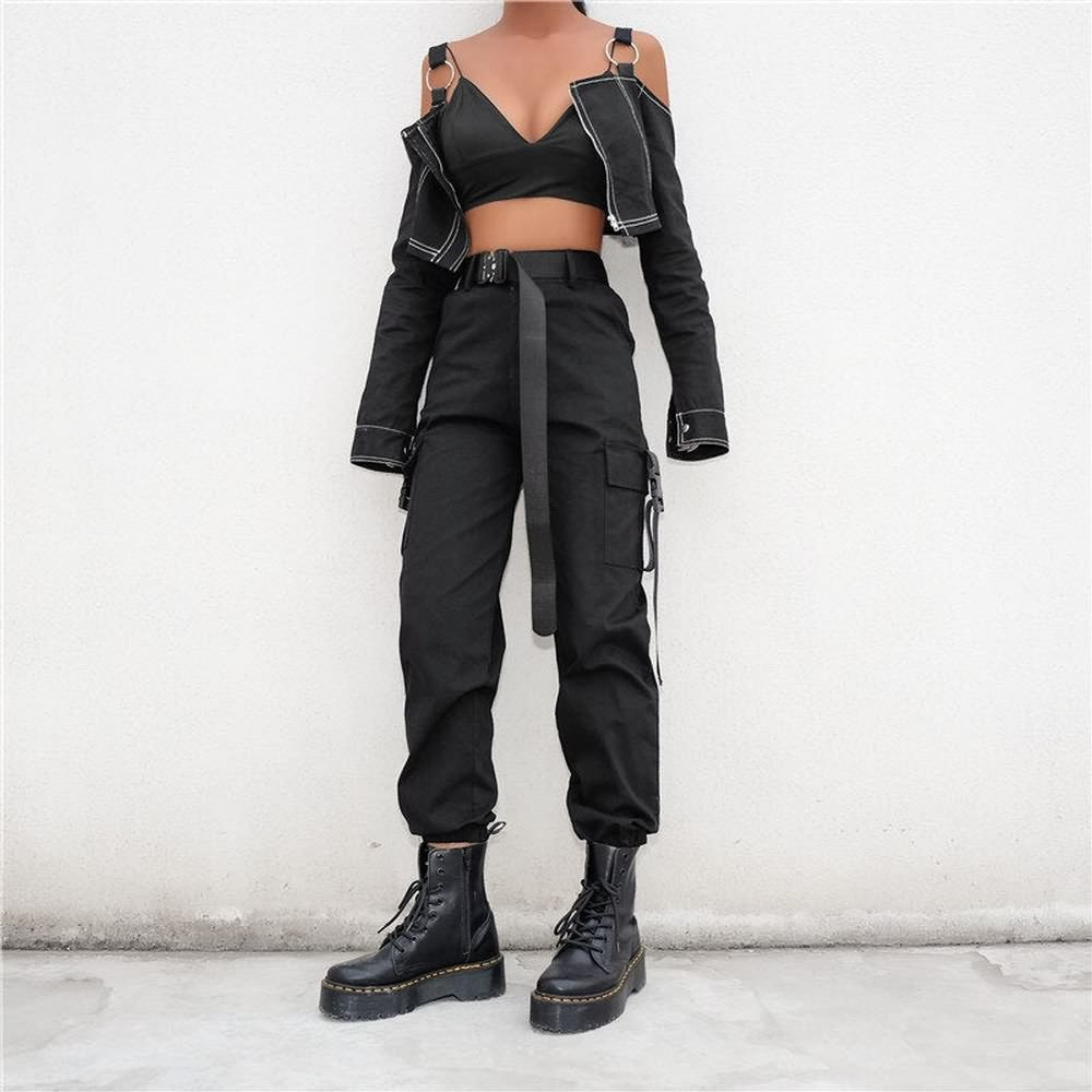 Expresa tu individualidad y actitud con nuestros pantalones cargo góticos con correa de hebilla. Confeccionados en tela suave, transpirable y duradera, estos pantalones son perfectos para quienes aman destacar. Con dos bolsillos delanteros y amplios bolsillos en los muslos con correas de hebilla, tendrás espacio de sobra para tus pertenencias y accesorios. La cintura alta y los puños acanalados garantizan un ajuste favorecedor y cómodo, mientras que la correa de hebilla le da un toque de estilo. Ya sea para una fiesta, un festival o una salida informal, estos pantalones son versátiles para cualquier ocasión. ¡Compra ahora y luce tu estilo único!