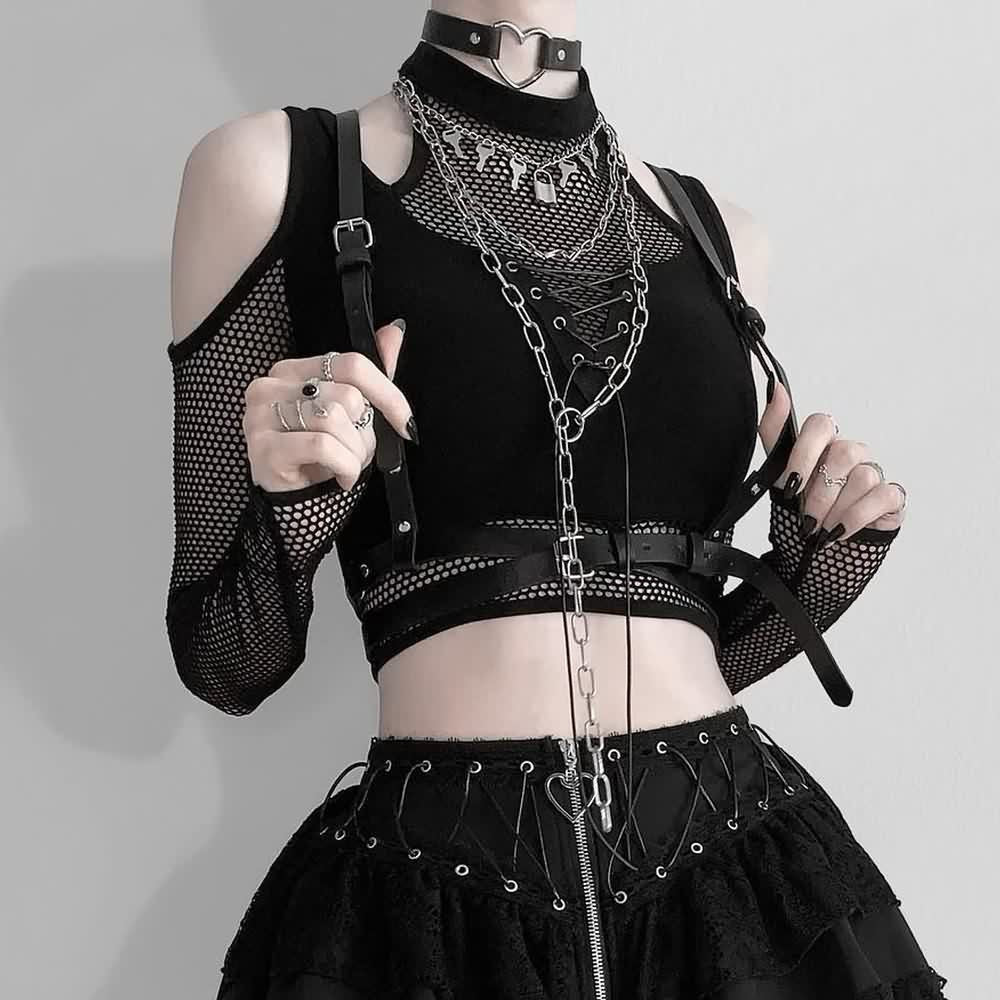Realza tu estilo gótico con nuestro exquisito top corto gótico con hombros descubiertos y mangas de malla. Esta impresionante prenda luce atractivas mangas largas, intrincadas capas interiores y mangas de malla, y un cierre frontal con ojales personalizable. El diseño de hombros descubiertos añade un toque de coquetería y encanto, revelando tus hombros con gracia y encanto. Confeccionado en malla suave y transpirable, este top corto garantiza la máxima comodidad. Combínalo fácilmente con jeans, pantalones, faldas o shorts para un llamativo conjunto gótico o casual que resalte tu estilo único.