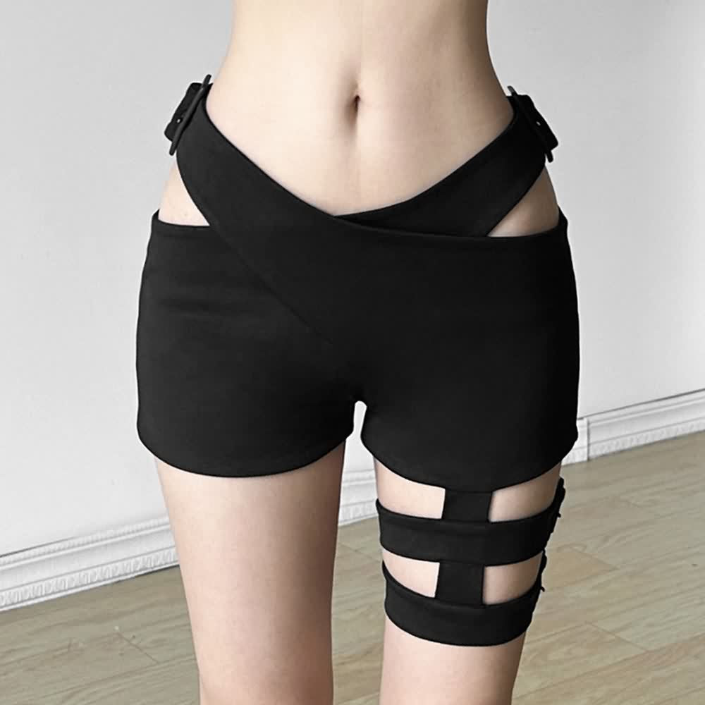 Dale un toque de glamour vanguardista a tu armario con nuestros shorts góticos punk con corte en la cintura. Con un diseño de cintura alta y cinturilla recortada para un look elegante y estilizado, estos shorts también cuentan con exclusivas tiras laterales en los muslos para un mayor estilo. Confeccionados en una cómoda mezcla de poliéster y elastano, estos shorts negros ajustados son perfectos para cualquier estilo alternativo. Luce tu estilo atrevido con esta prenda destacada.