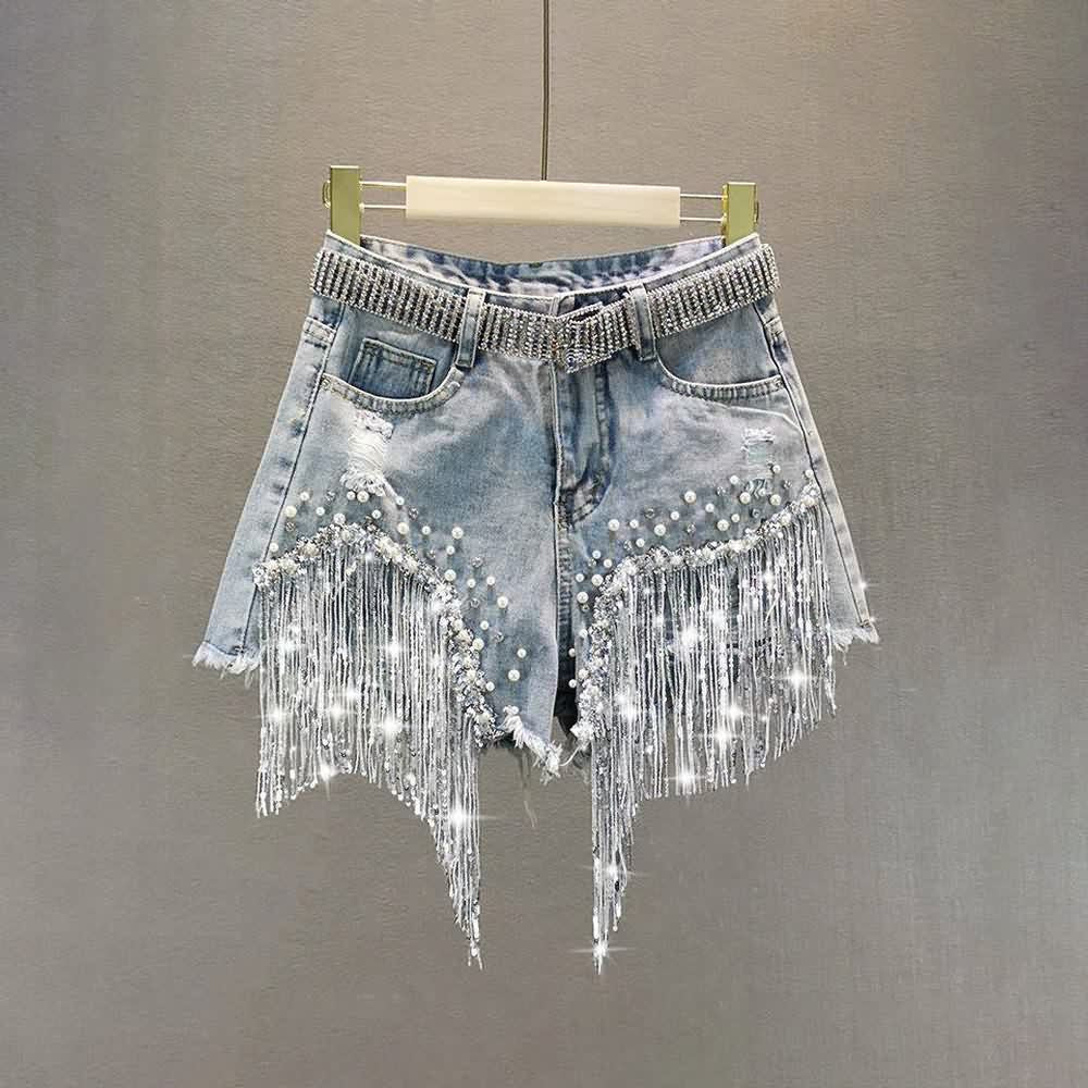 Presentamos nuestros shorts vaqueros con flecos góticos punk. La combinación perfecta de vanguardia y elegancia. Con cierre de cremallera y botón, estos shorts de lavado claro presentan un diseño de cinco bolsillos para mayor funcionalidad y detalles desgastados para un mayor estilo. Con un dobladillo sin rematar, son imprescindibles para cualquier persona a la moda.