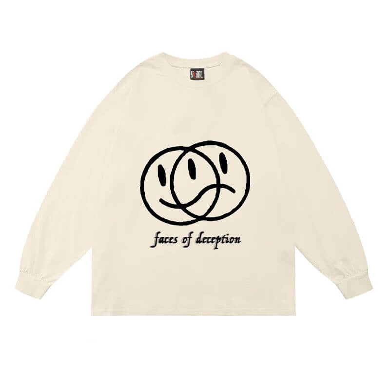 Dale un toque de distinción a tu armario con la sudadera estética blanca y beige con estampado de caras tristes. Una combinación perfecta de estilo y comodidad. Envío gratuito en EE. UU. y a todo el mundo.