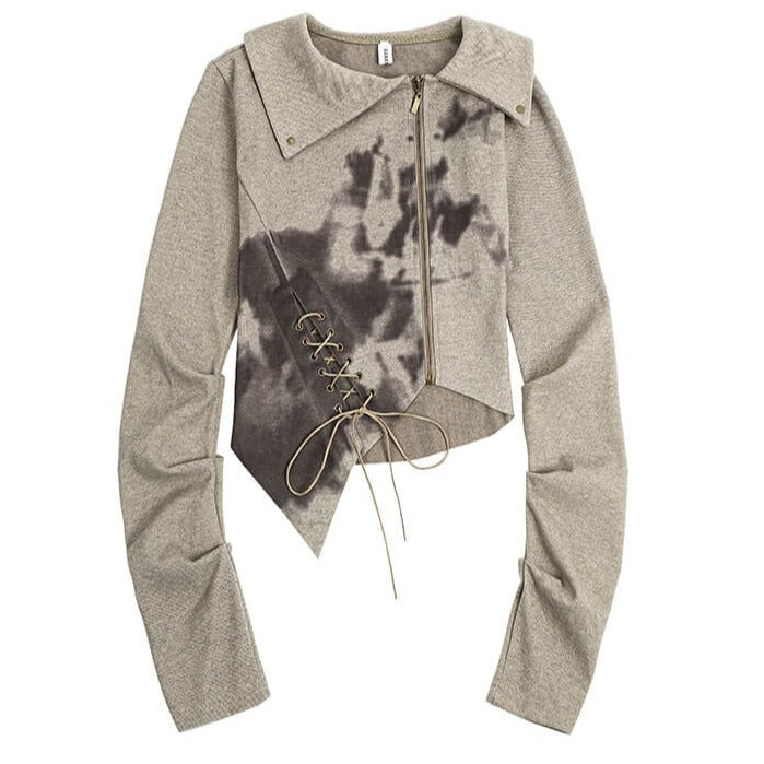 Mejora tu estilo con la camiseta de manga larga con cuello con cremallera y estampado de tinta. Envío gratuito en EE. UU. y a nivel mundial. En un versátil tono beige, esta camiseta de manga larga no es solo un atuendo; es una expresión de tu estilo único. Combina a la perfección elementos asimétricos con la estética del año 2000 y la moda urbana.
