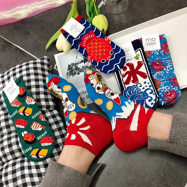 Calcetines cortos de sushi con diseño de gato de la suerte de estilo japonés