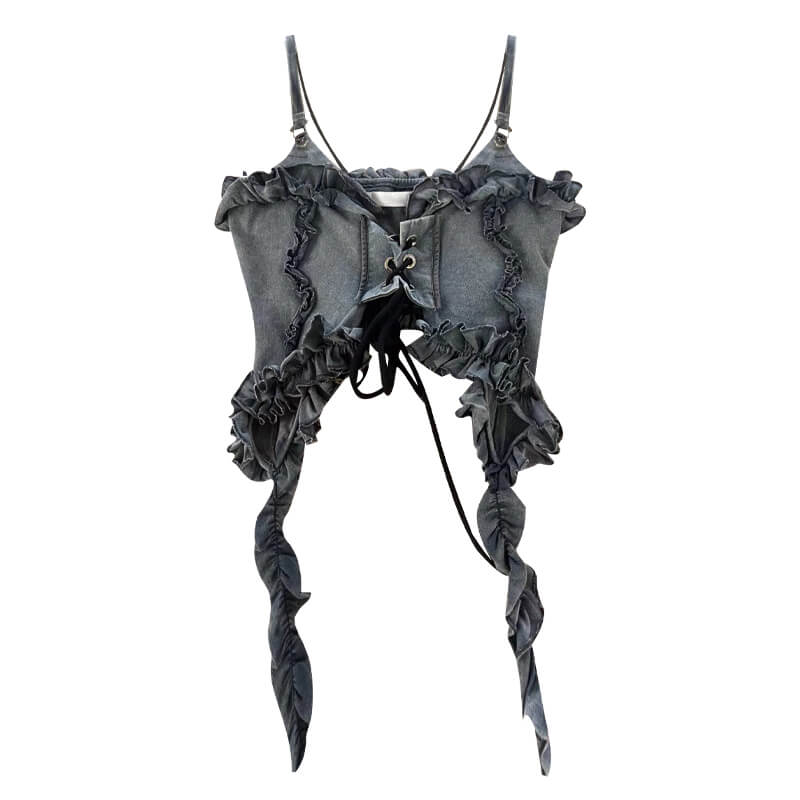 Confeccionado en mezclilla de alta calidad, este top tipo corsé no solo ofrece estilo, sino que también garantiza durabilidad y comodidad. Sus exclusivos tirantes largos le dan un toque de estilo, permitiéndote personalizar tu look y destacar entre la multitud. Ya sea para salir a la calle o asistir a un evento inspirado en el Y2K, este top es una adición versátil a tu armario.