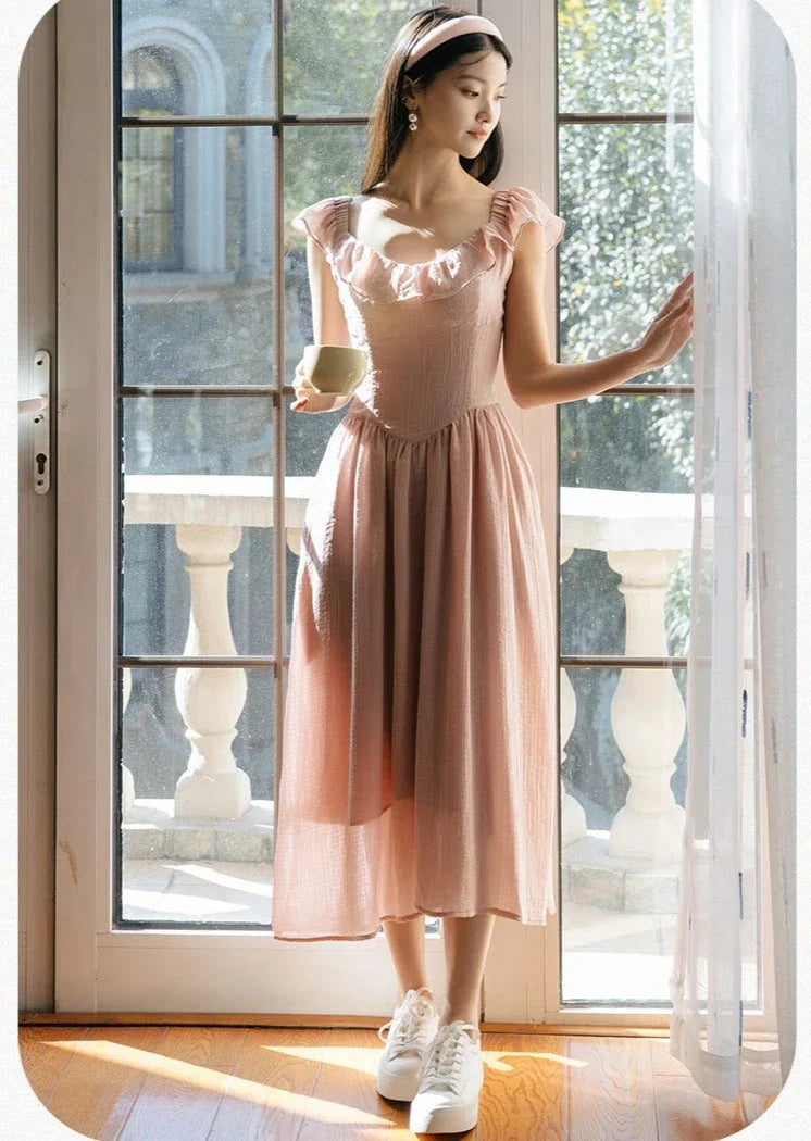 ¡Prepárate para dar vueltas y bailar con nuestro vestido Ema Mauve Balletcore Aesthetic Coquette! Con su delicado tono rosa empolvado oscuro, silueta evasé, escote con volantes, hombros elásticos y una cómoda espalda ajustada con fruncido, este etéreo vestido te hará sentir como una elegante bailarina. ¡Inspírate y exprésate con movimientos elegantes con este femenino y etéreo vestido!