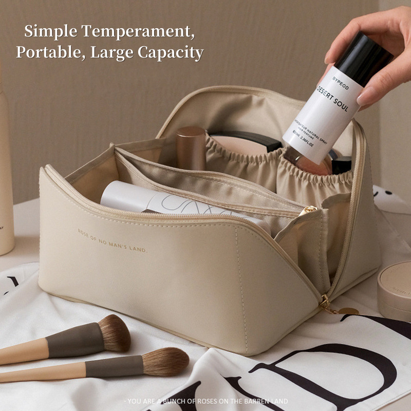 Este neceser tiene una forma sencilla y elegante, con una abertura amplia para facilitar el acceso. Cuenta con múltiples compartimentos interiores que permiten guardar cosméticos diarios por categoría. Gran capacidad. ¡Muy recomendable!