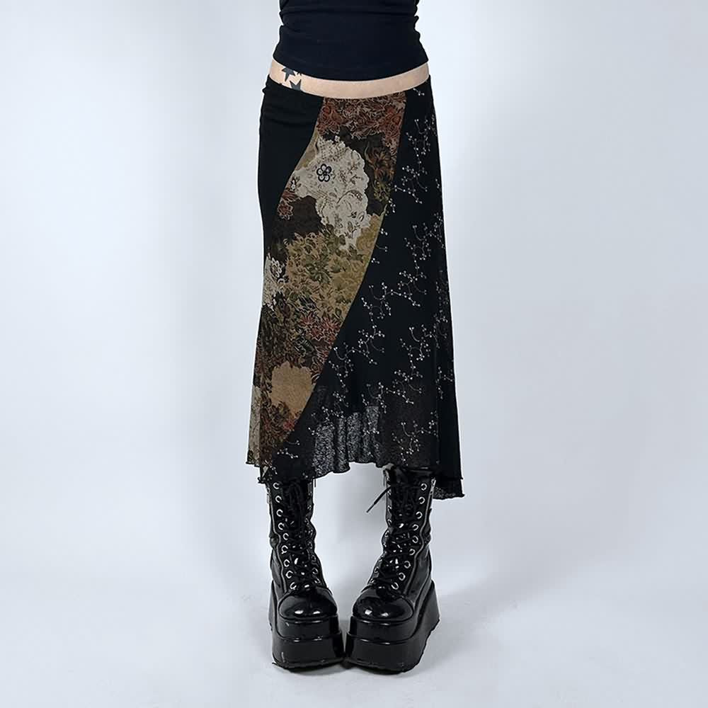 Explora el lujoso encanto de nuestra falda midi asimétrica de encaje retro vintage. Con delicados detalles de encaje y un exclusivo bajo asimétrico, esta falda midi aporta sofisticación a cualquier look. El intrincado estampado étnico en la tela la convierte en una obra de arte. Ideal para fashionistas que buscan elegancia con estilo.