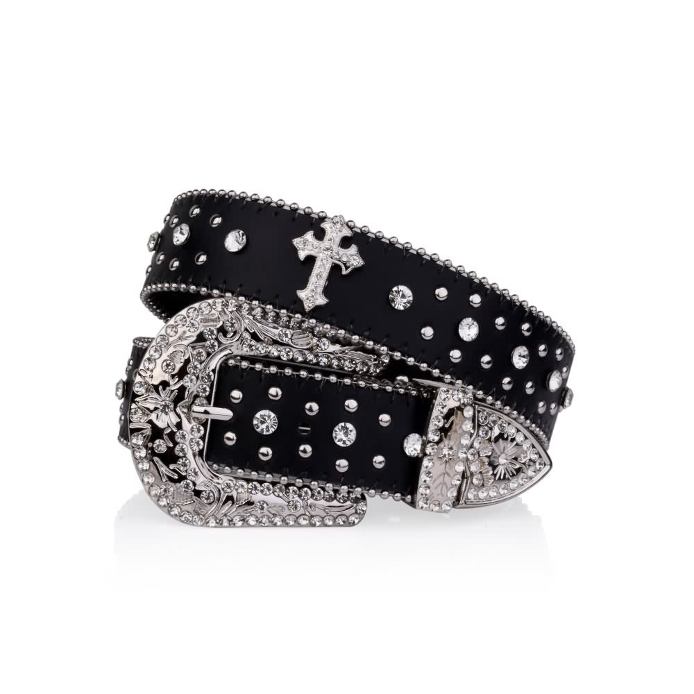 Explora el cautivador estilo de nuestro cinturón gótico punk rock con hebilla cruzada de diamantes de imitación. Con detalles de remaches de diamantes de imitación y un llamativo detalle de cruz, este cinturón negro de cuero sintético luce un encanto rebelde. Ideal para amantes del punk rock y la moda alternativa, realza cualquier atuendo con un toque vanguardista.